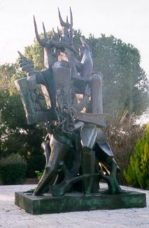 | This abstract sculpture stands in the garden of the Van Leer Institute. The institute was founded by Polly Van Leer in 1956. It is a non-political organization studying Israel-Arab relations. (A vast subject, definitely.) |